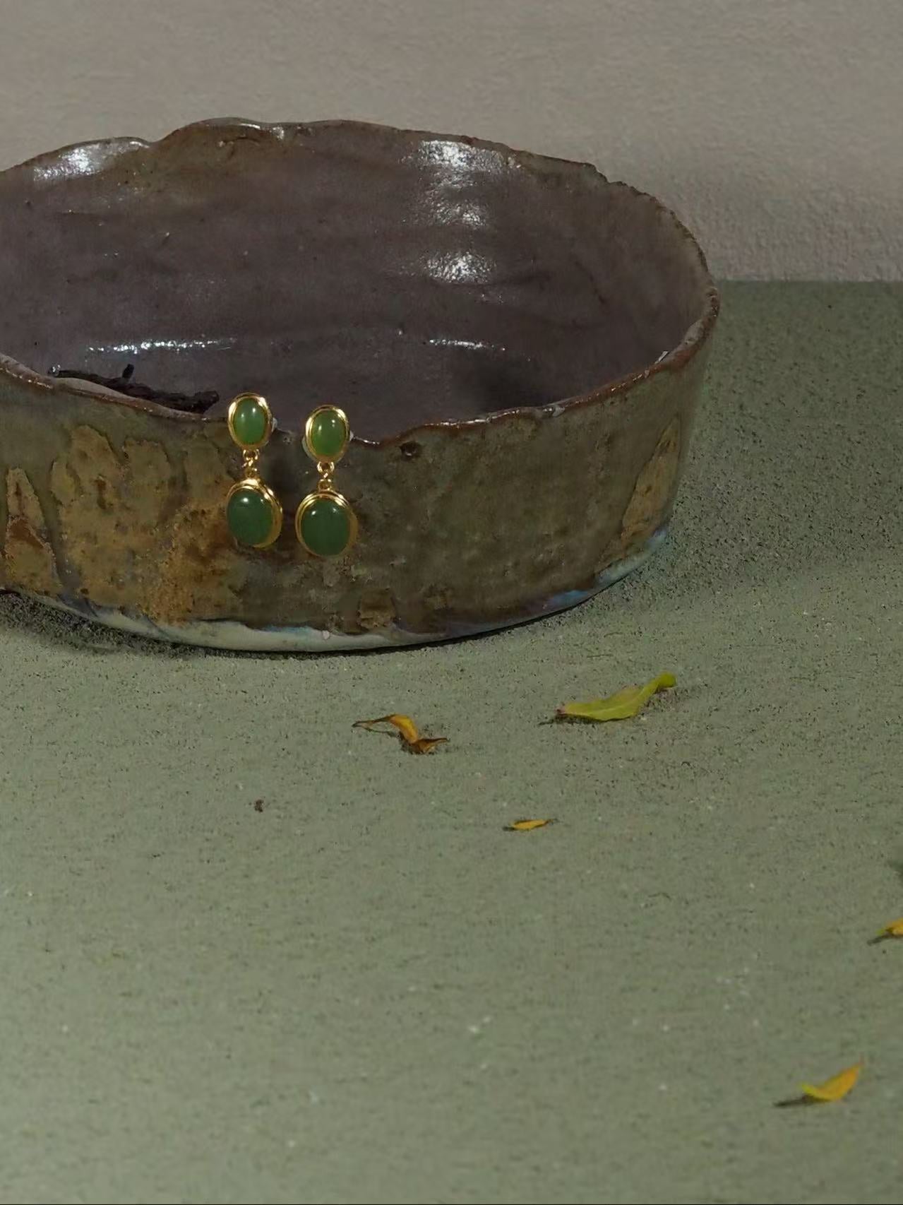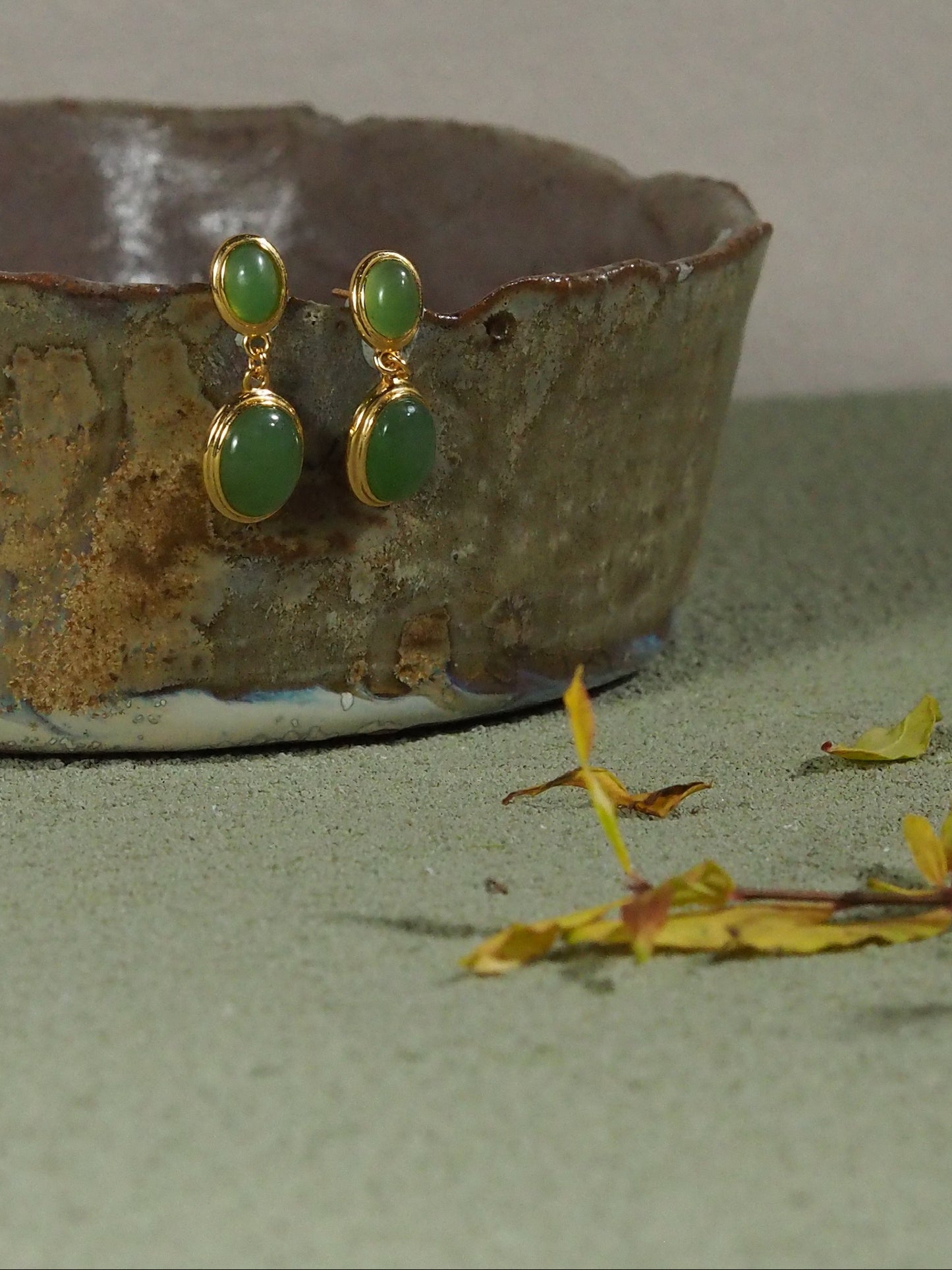ORBIT|涟 Lian — Green Jade Vermeil Dangle Earrings